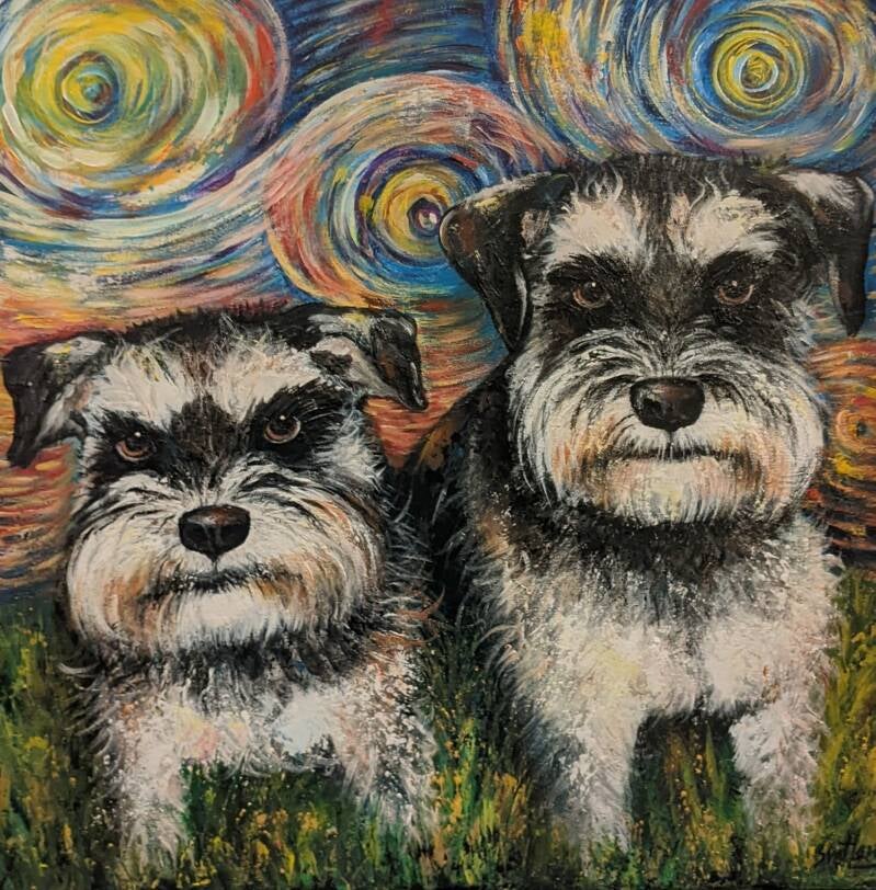 Thank you Svetlana for the fabulous custom painting of our two miniature schnauzers Porsche and Bentley. You perfectly captured both of their expressions. The painting will occupy a place of honor in our household!